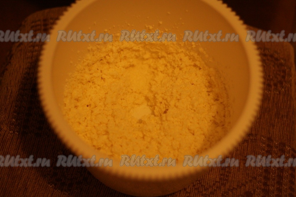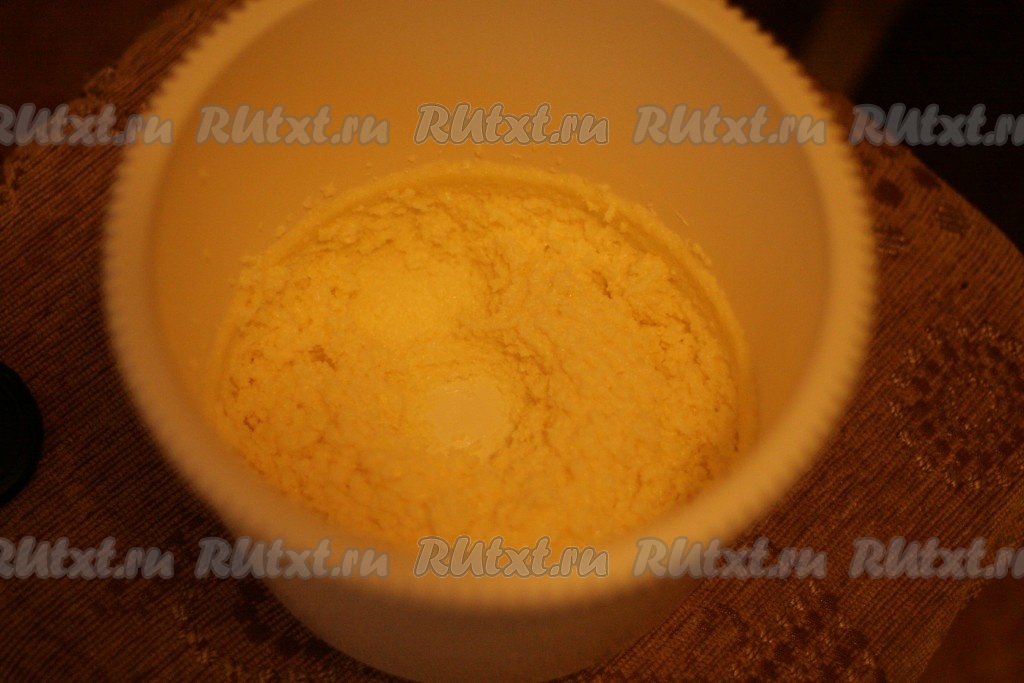 Размягченное сливочное масло (комнатной температуры) взбить с сахаром в течение 3-4 минут.