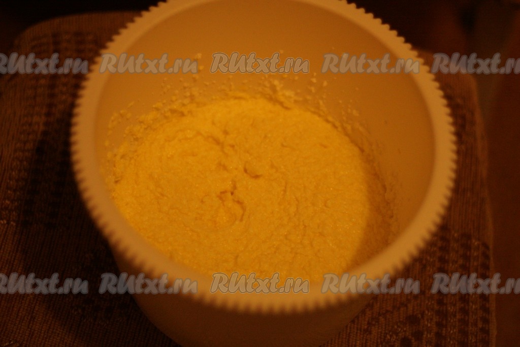 Добавить творог, взбивать еще 3 минуты.