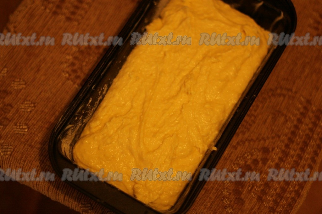 Замесить тесто. Форму для кекса смазать сливочным маслом и выложить в нее тесто.