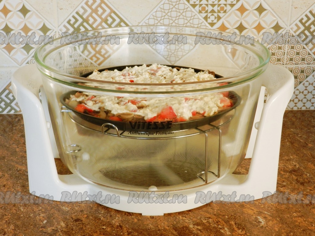 Поставить свинину с грибами и сыром запекаться под гриль в разогретую духовку на 10 минут при температуре 200 градусов или в аэрогриль (я запекала в аэрогриле).