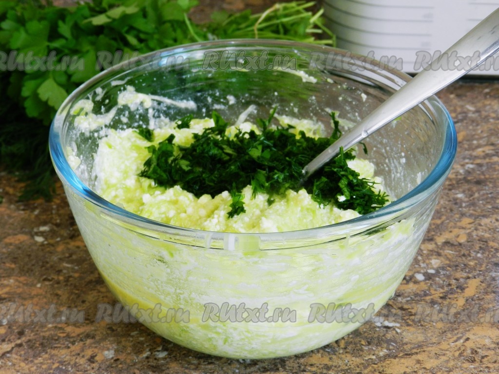 В миску добавить мелко нарезанную зелень, снова перемешать.