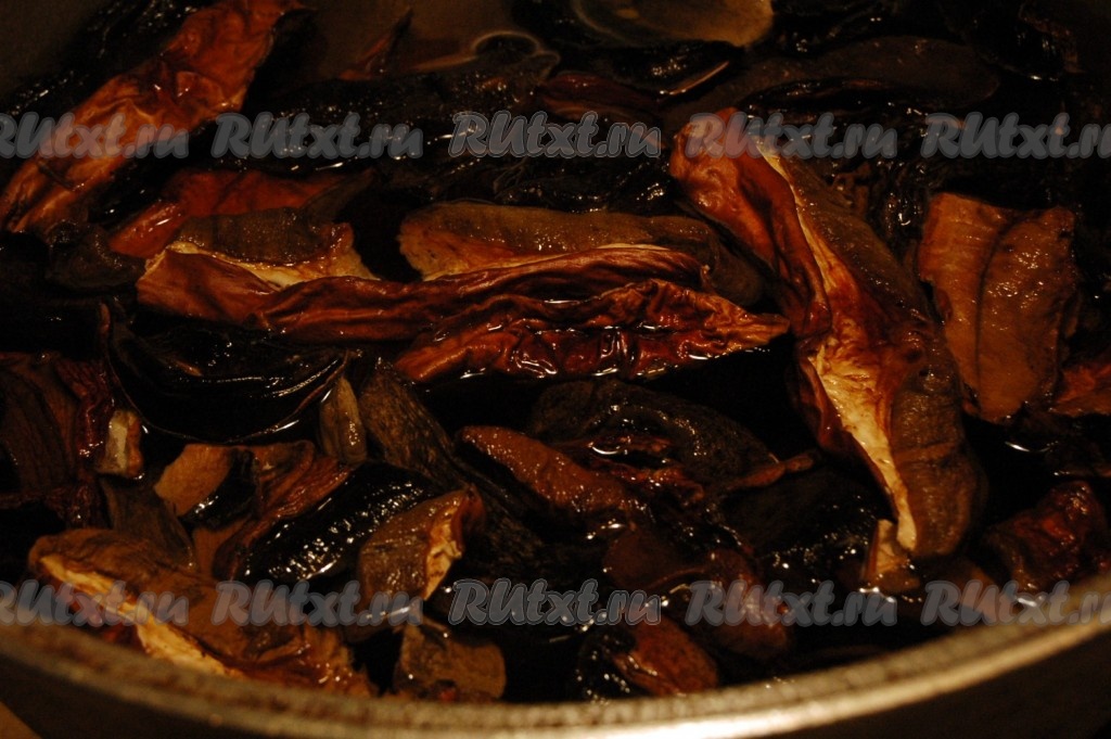 Залить сушеные грибы холодной водой и поставить варить минут на 40-50.