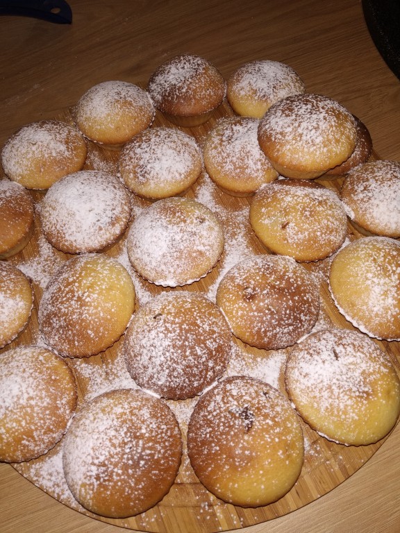 Духовку нагреть до 180 градусов, отправить выпекаться кексы до готовности, примерно 25-30 минут. Остывшие кексики посыпать сахарной пудрой. Кексы с начинкой из вареной сгущенки - простое, но очень вкусное лакомство.
