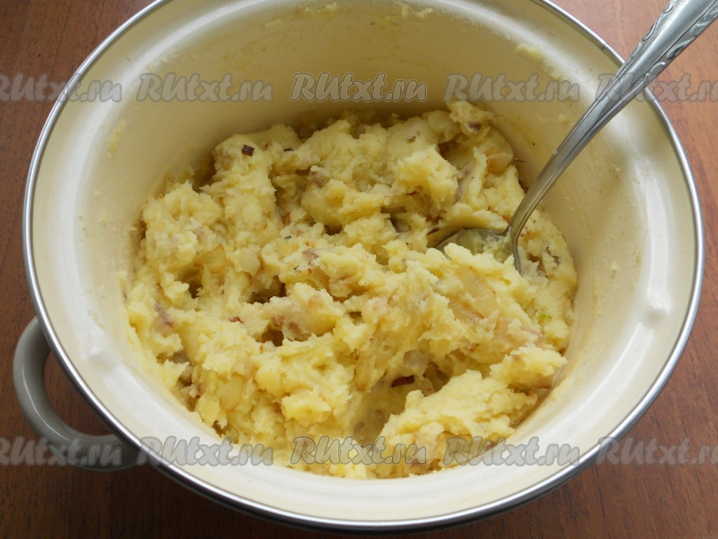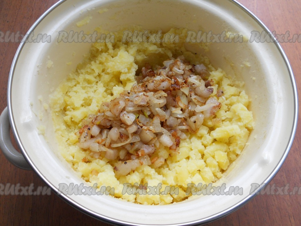 Картофель с салом и луком тщательно перемешать и дать остыть.