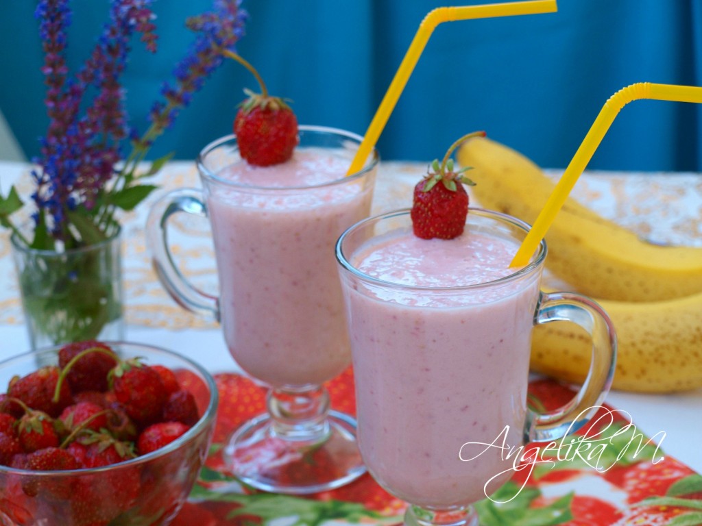 В жаркие летние дни предлагаю насладиться вкусным молочным коктейлем из банана с клубникой. Сочетание потрясающее! Такому коктейлю будут рады и дети и взрослые.