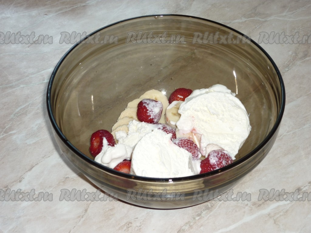 Существует множество рецептов приготовления коктейлей, одним из них хочу сегодня поделиться. За основу этого напитка я взяла классический йогурт без добавок и мороженое. В качестве наполнителя для коктейля использовала банан и клубнику, но это не принципиально, ягоды и фрукты можно подбирать по сезону. Сахар добавлять исключительно по требованию сладкоежек, но, на мой вкус, он там лишний, но решать Вам. Попробуйте, ведь фруктово-ягодный наполнитель изумительно сочетается с йогуртом и мороженым, а в результате получается очень-очень вкусный и полезный коктейль.