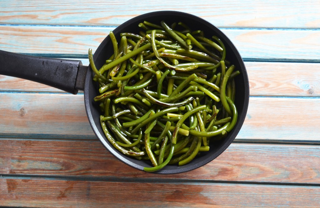 Некоторые стрелки, что помоложе, доходят до готовности быстрее, так что жарьте стрелки, пока не убедитесь, что все стали мягкими. Готовность стрелок я проверяю на вкус, также как и солёность. Обычно молодые стрелки жарятся минут 5-10.