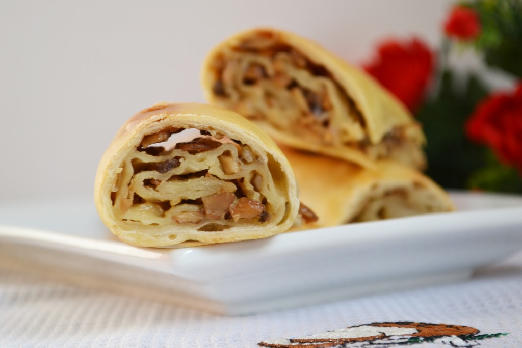 Рецептов штруделя очень много: с яблоками, вишней, маком. Каждый готовит, исходя из личных предпочтений. Я раньше готовила штрудель только с яблоками, добавляя некие сопутствующие ингредиенты или специи. А тут как-то пришла мне идея приготовить штрудель с грибами. И результат порадовал настолько, что попробовав кусочек, думала, что сфотографировать придется в следующий раз.