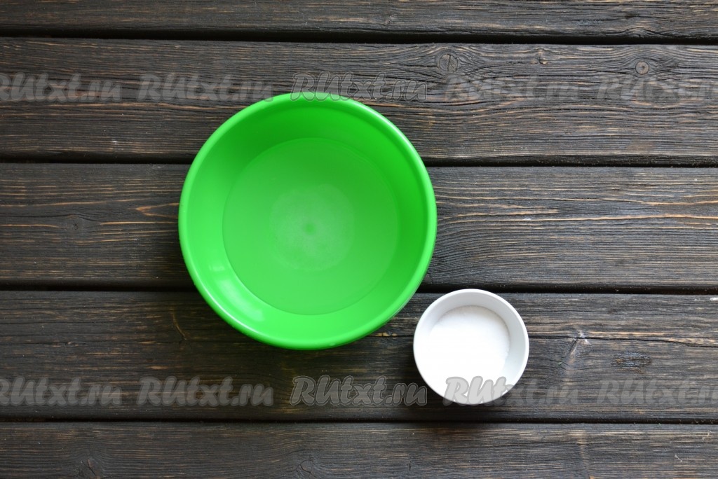 Приступаем к приготовлению теста для штруделя. В кипяченую остывшую воду добавляем соль и перемешиваем.