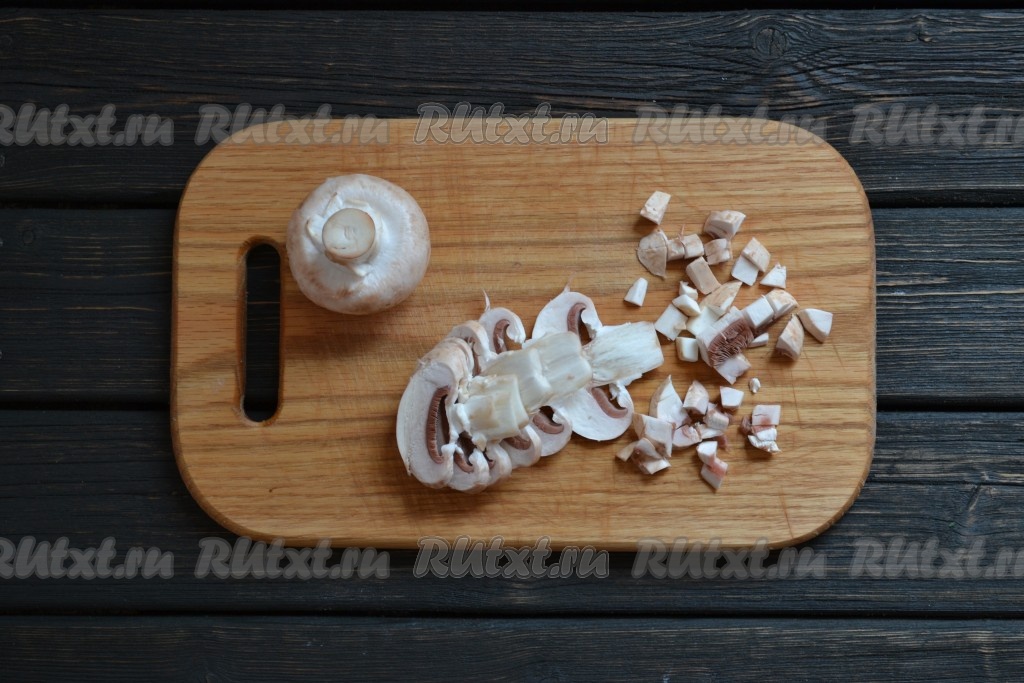 Вымытые грибы нарезаем мелкими кубиками.
