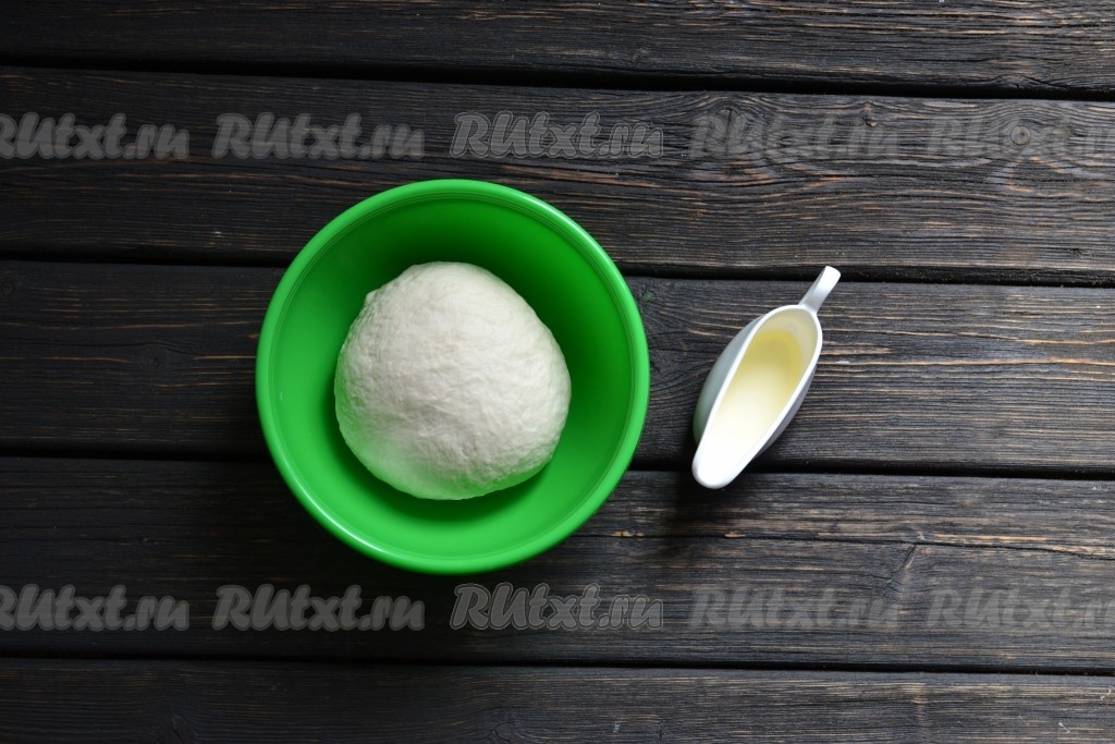 Замешиваем тесто. Оно должно быть мягким, не липнущим к рукам. Когда вошла вся мука, смачиваем руки маслом и продолжаем вымешивать. Когда руки становятся сухими, еще смачиваем маслом. И продолжаем вымешивать 10 минут. После чего тесто накрываем пищевой пленкой и оставляем отдохнуть, пока готовится начинка.