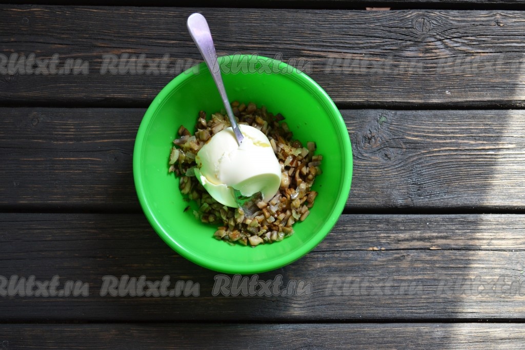 В одной посудине соединяем грибы, лук, соль и добавляем крем сыр (его можно смело заменить сметаной или майонезом, но количество нужно немного уменьшить), перемешиваем и начинка для штруделя готова.