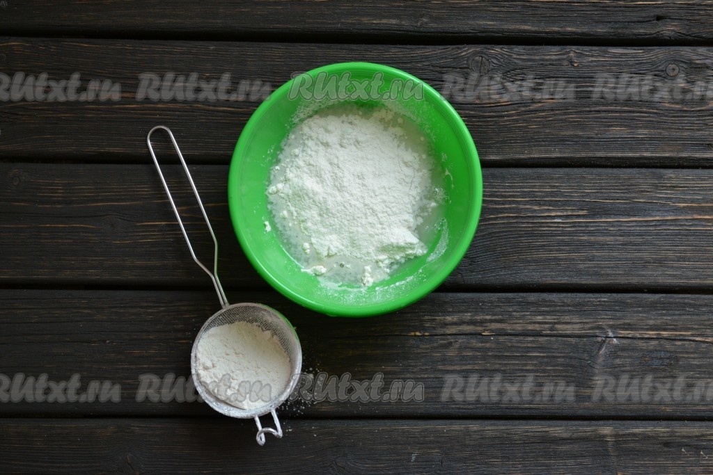 После того как растворили в воде соль, частями вводим просеянную дважды муку.