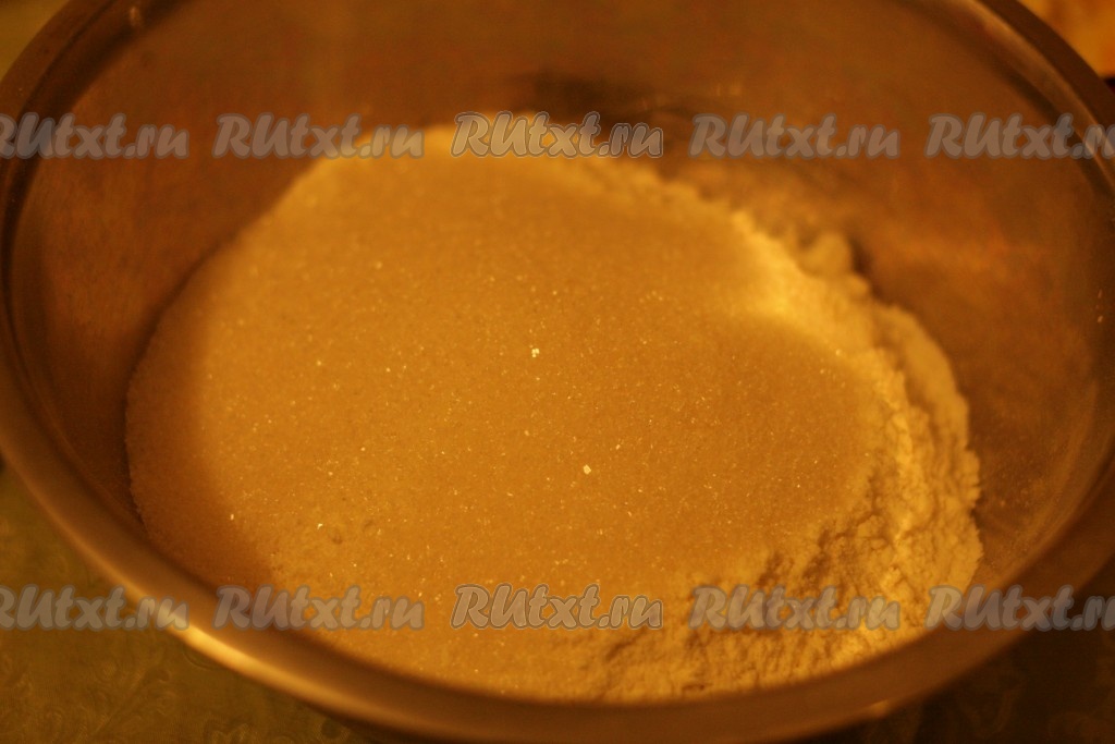 Муку смешать с сахаром, пряностями и содой.