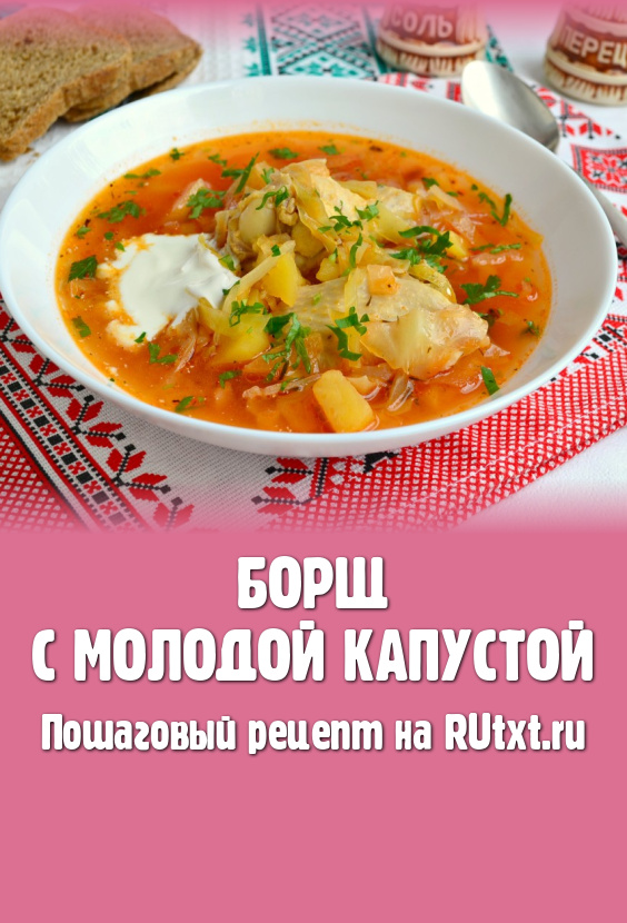 Готовому борщу дать настояться 15-20 минут (крышкой не накрывать) и разлить по тарелкам. Подать вкуснейший борщ с молодой капустой со сметаной и зеленью.
