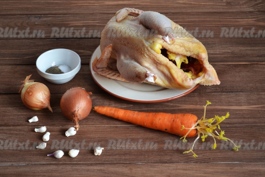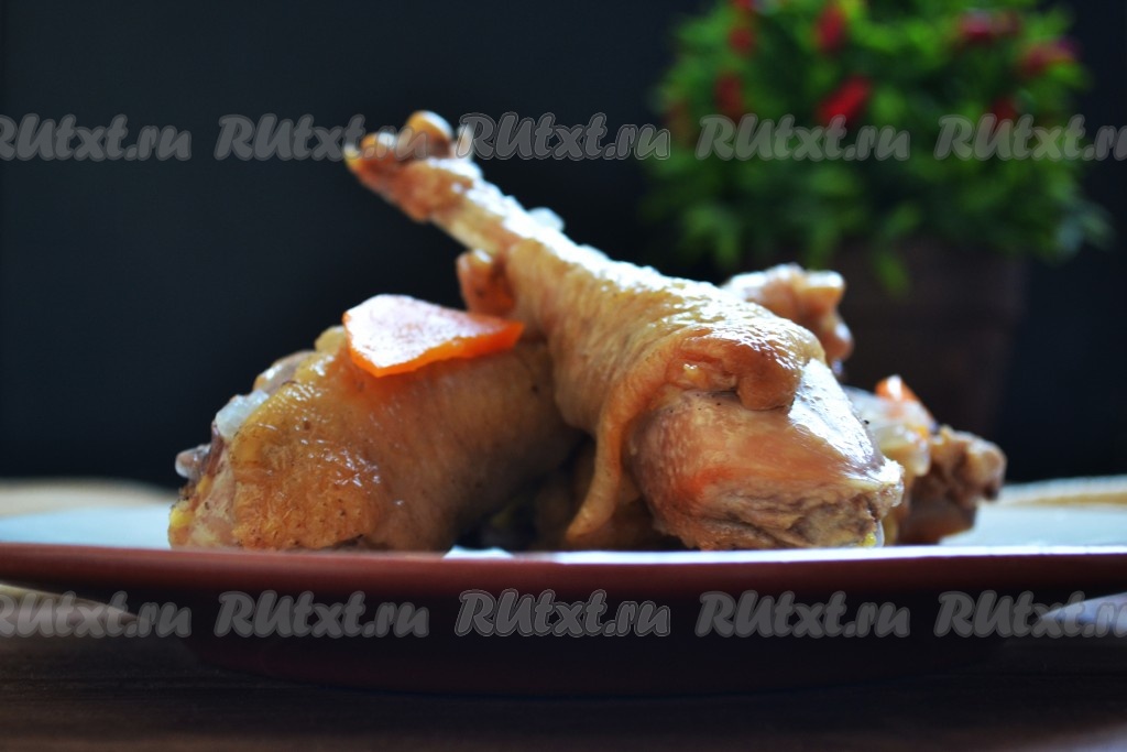 Для того чтобы получить сытный обед, сегодня мне понадобилась тушка домашней курицы, лук, чеснок и немного специй. Ну и конечно, незаменимый помощник - мультиварка. Мясо домашней курицы намного жестче, чем у магазинной, поэтому мультиварка для приготовления такой курочки - просто находка. Ведь тушение в мультиварке - аналог низкотемпературного приготовления блюд в печи. Мясо получается очень вкусным! По этому рецепту можно приготовить и магазинную курицу, но время для тушения нужно сократить. В качестве гарнира подойдут каши, отварной картофель или пюре.