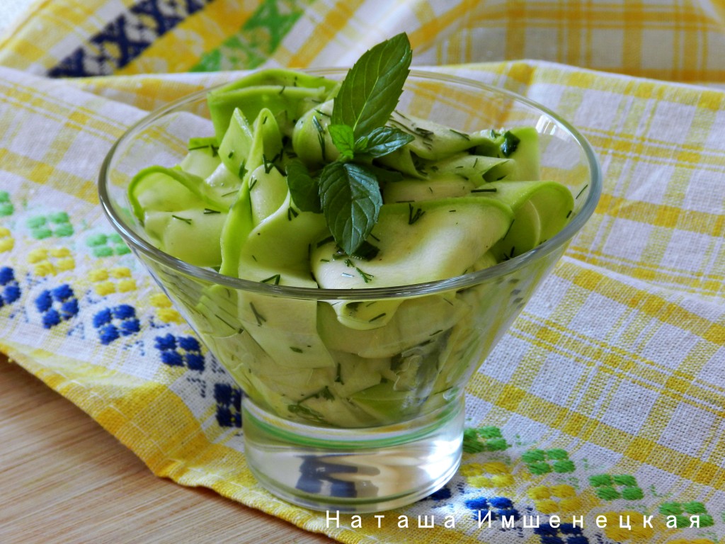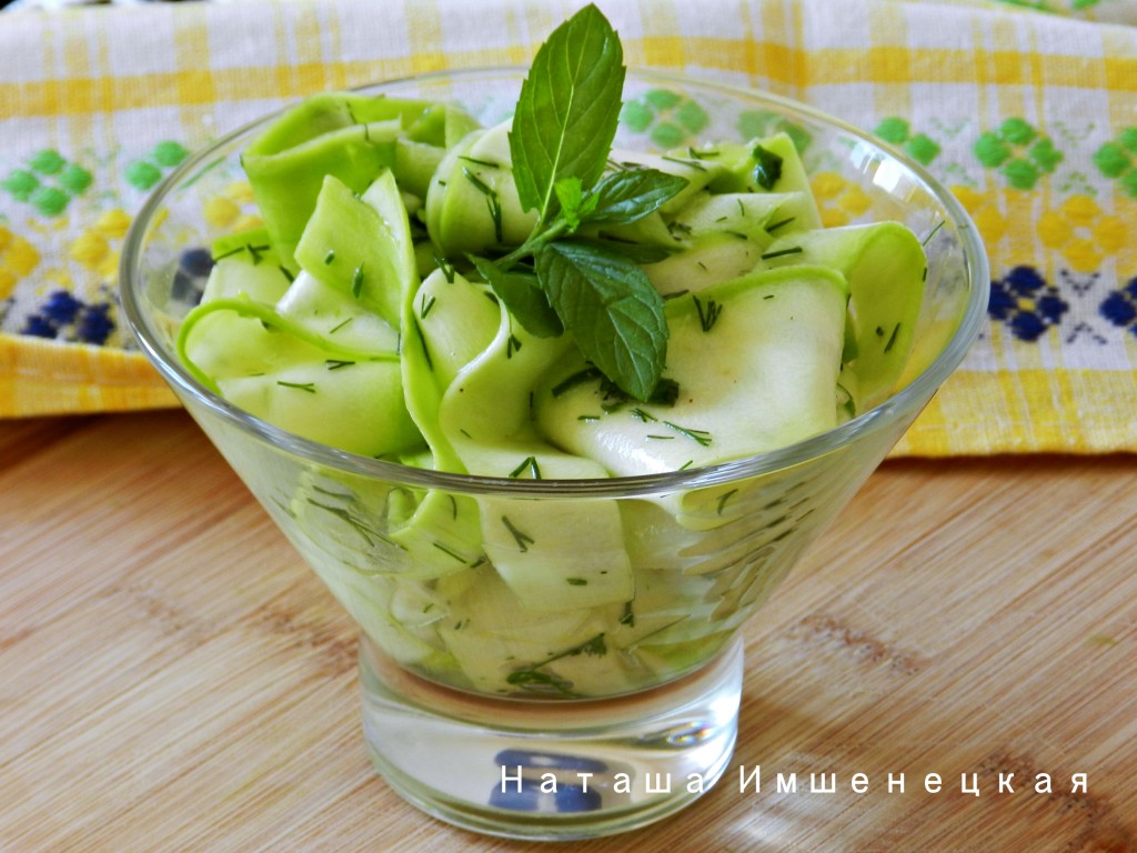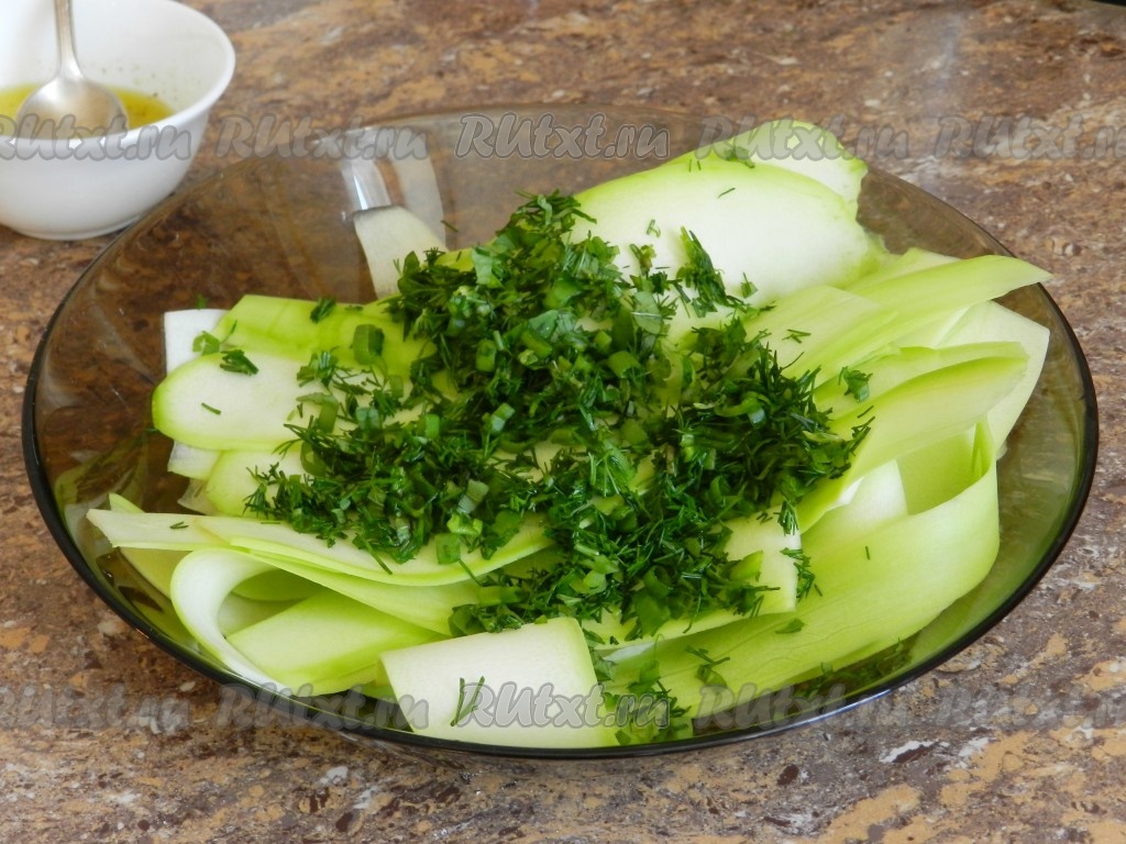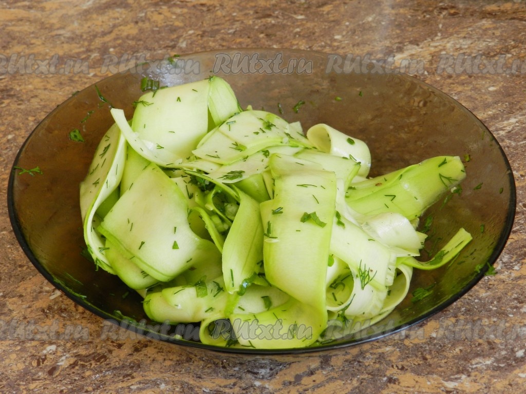 Вкусный, сочный и нежный салат из молодого сырого кабачка готов.