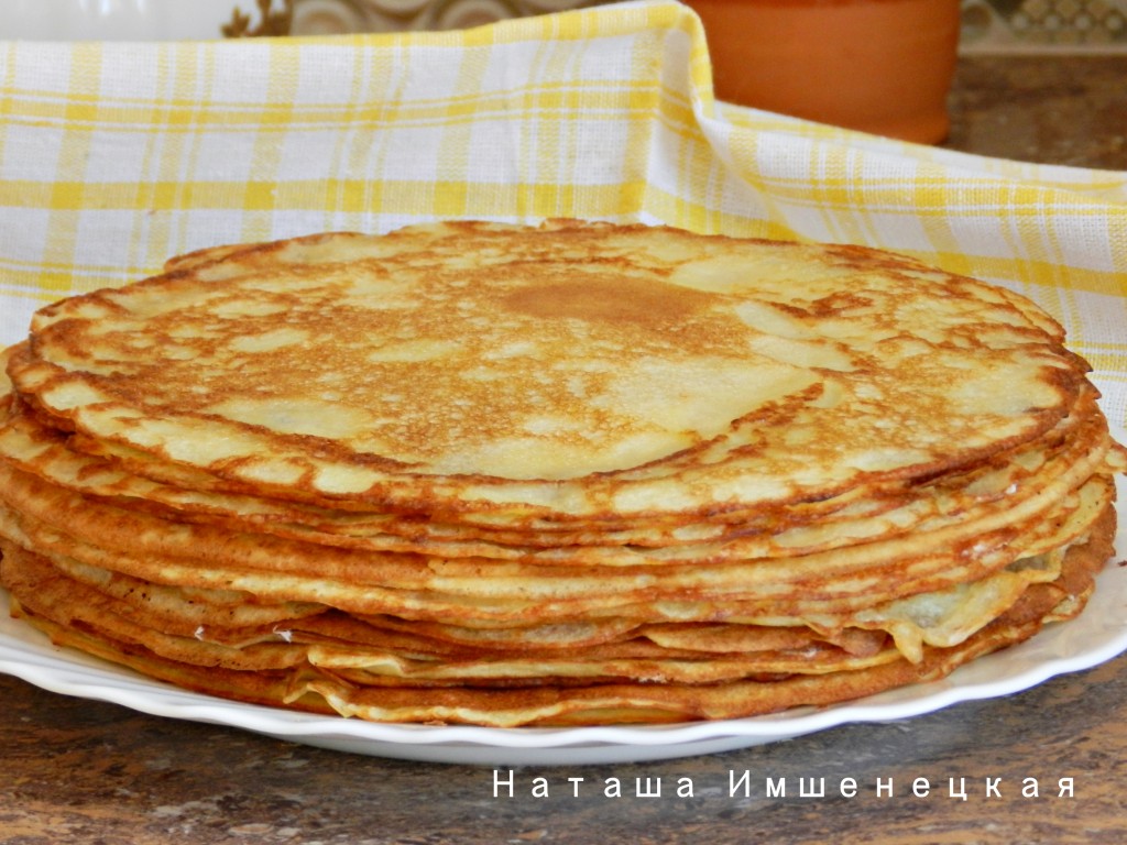 Очень вкусные и пышные кислые блины на дрожжах готовы.
