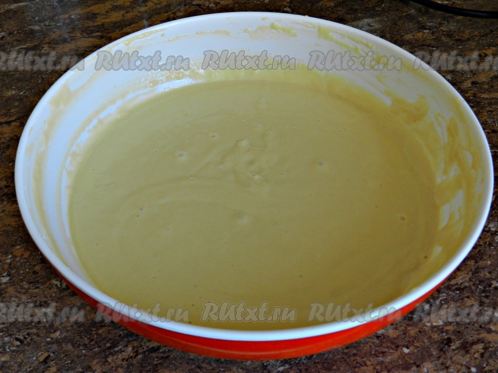 Перемешать тесто, накрыть и оставить еще на 20-30 минут. Тесто получится довольно густым.