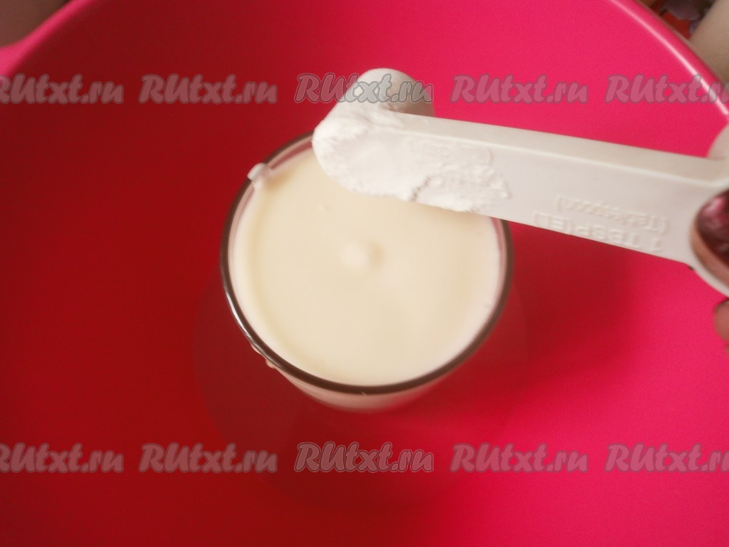 В ёмкости для замешивания теста соединяем сметану с содой и перемешиваем (таким образом мы гасим соду в сметане).