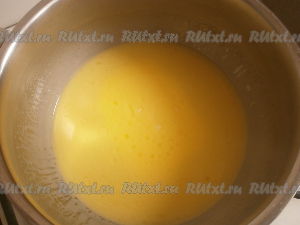 Растапливаем в отдельной посуде на медленном огне сливочное масло (или маргарин), даём немного остыть.