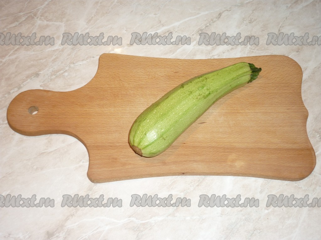 Кабачок вымыть под холодной проточной водой, обсушить, отрезать хвостик. Лучше взять молодой кабачок с маленькими семечками, в этом случае шкурку можно не снимать.