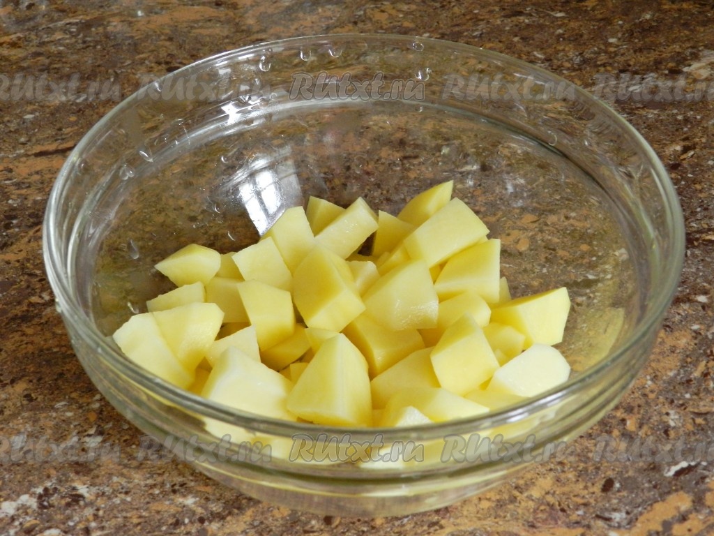 Картофель очистить и нарезать кубиками.
