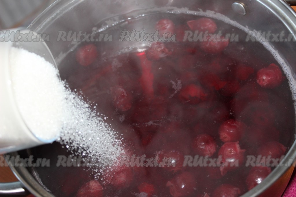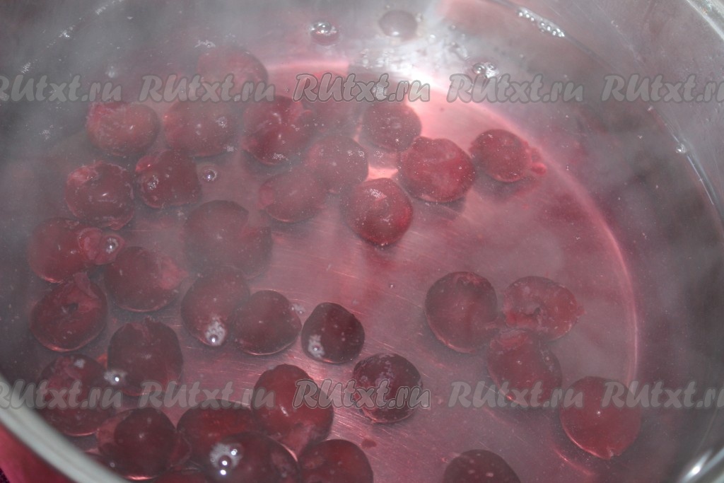 В кастрюлю подходящего размера влить 2-2,5 литра холодной воды и довести до кипения. Далее в кипящую воду всыпать замороженные ягоды и проварить на среднем огне 5-10 минут.