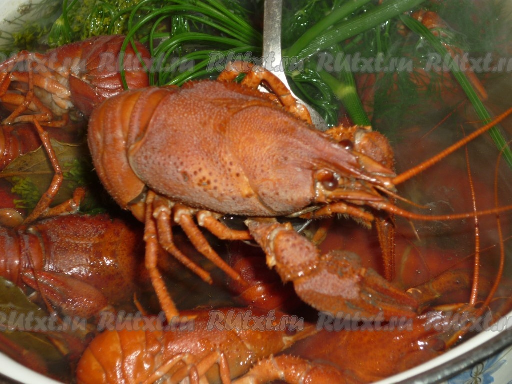 Варить до готовности на небольшом огне в течение 10 минут. Затем кастрюлю снять с огня, накрыть крышкой и дать ракам постоять в воде, в которой они варились, в течение 10-15 минут. За это время они вберут в себя нужное количество соли и станут очень сочными. После варки их цвет поменяется на ярко-красный.