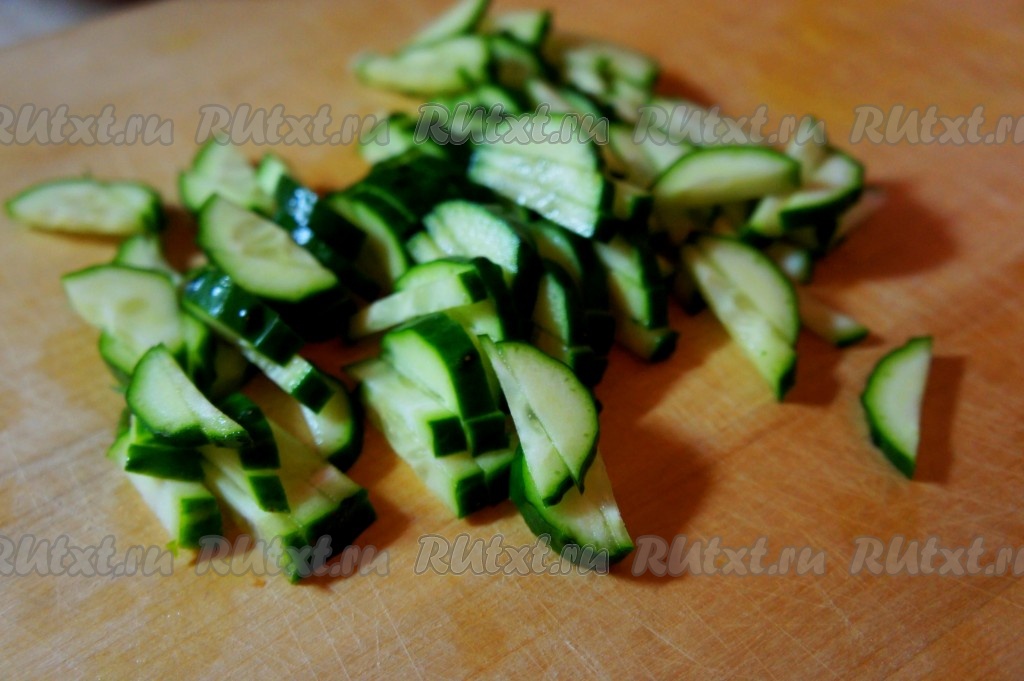 Огурцы нарезать соломкой.