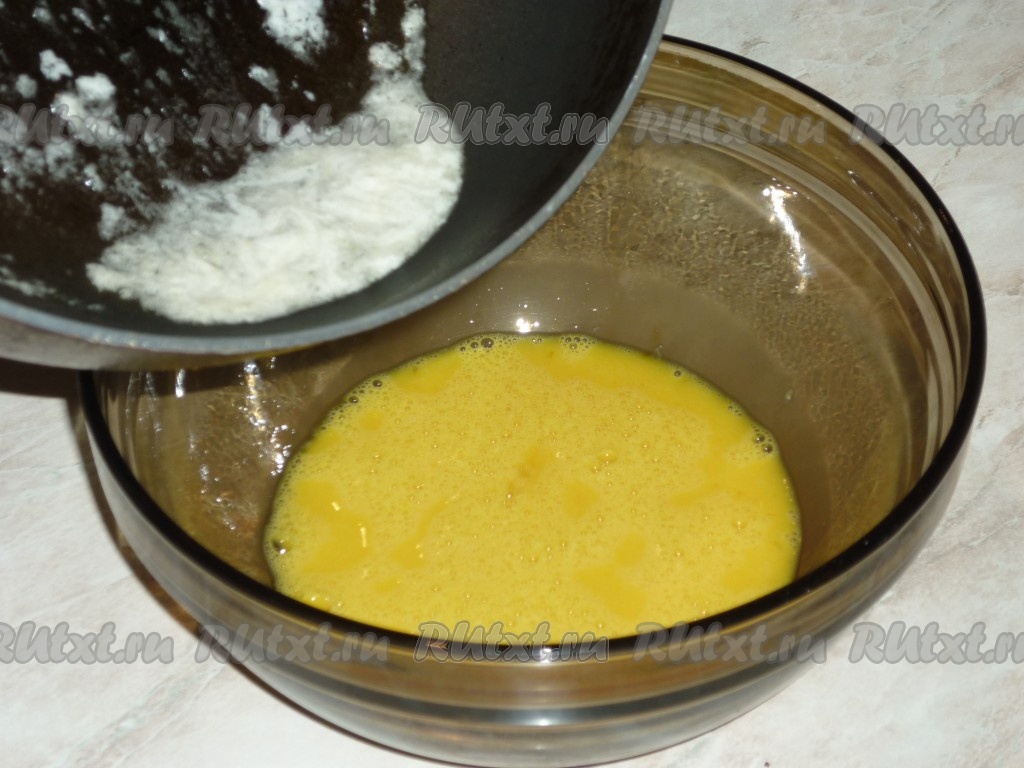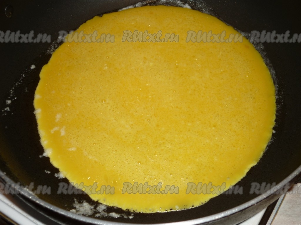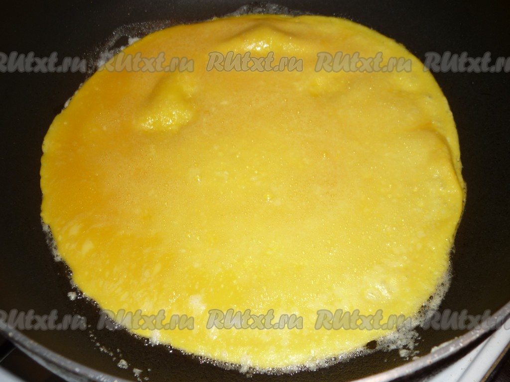 Вылить яично-масляную смесь обратно на сковороду, повторно смазывать её уже ничем не надо.