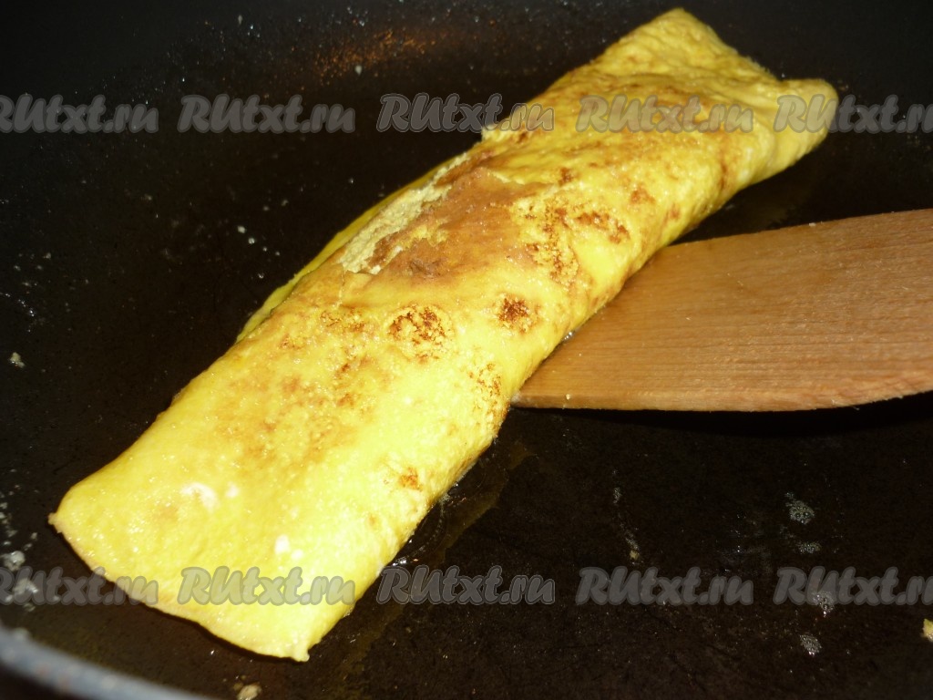 Нужно это делать очень аккуратно, так как структура омлета очень нежная.