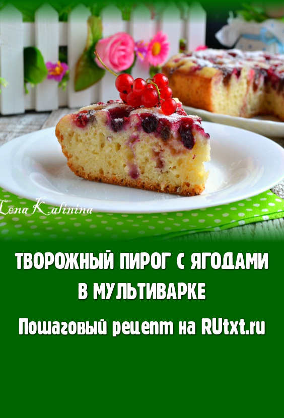 Вкуснейший, ароматнейший творожный пирог с ягодами, приготовленный в мультиварке, по желанию, перед подачей посыпать сахарной пудрой, а затем нарезать на части и подать к чаю.