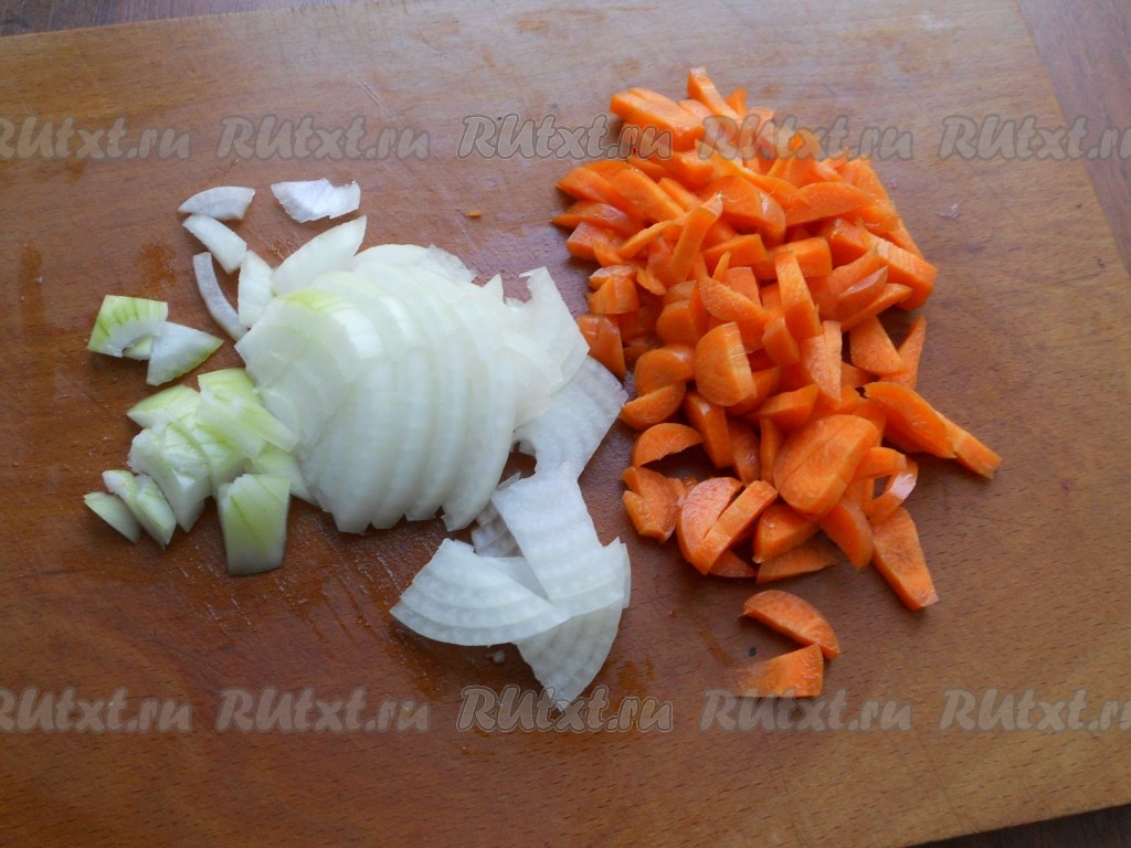 Очистив морковь и лук, нарезать их произвольно.