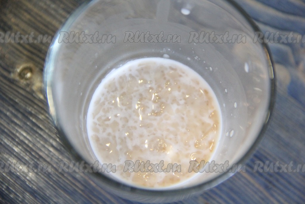 В тёплое молоко всыпать дрожжи, хорошо перемешать и оставить минут на 15, чтобы дрожжи ожили.