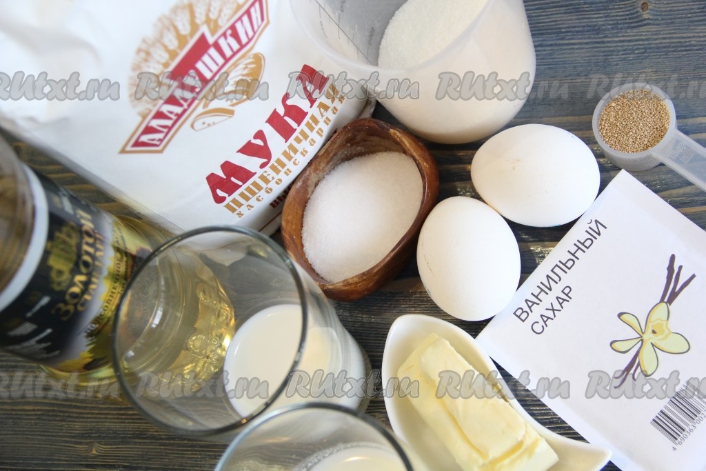 Подготовить продукты для приготовления дрожжевого теста. Молоко должно быть тёплым, а кефир - комнатной температуры.