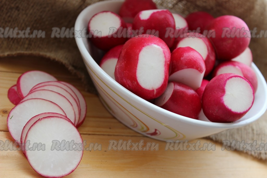 Редиску тщательно вымыть, срезать стебли и корешки.