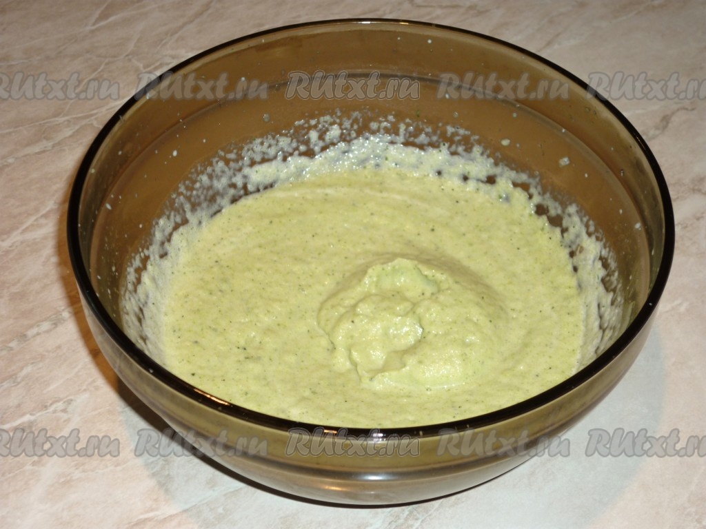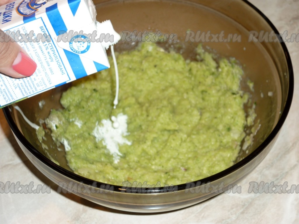 Влить в кабачковую массу сливки комнатной температуры и ещё раз хорошо пробить блендером.