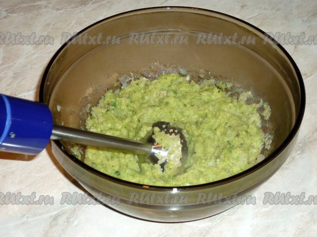 Когда кабачки станут мягкими, переложить содержимое сковороды в миску (или чашу блендера) и взбить погружным блендером до однородной массы.