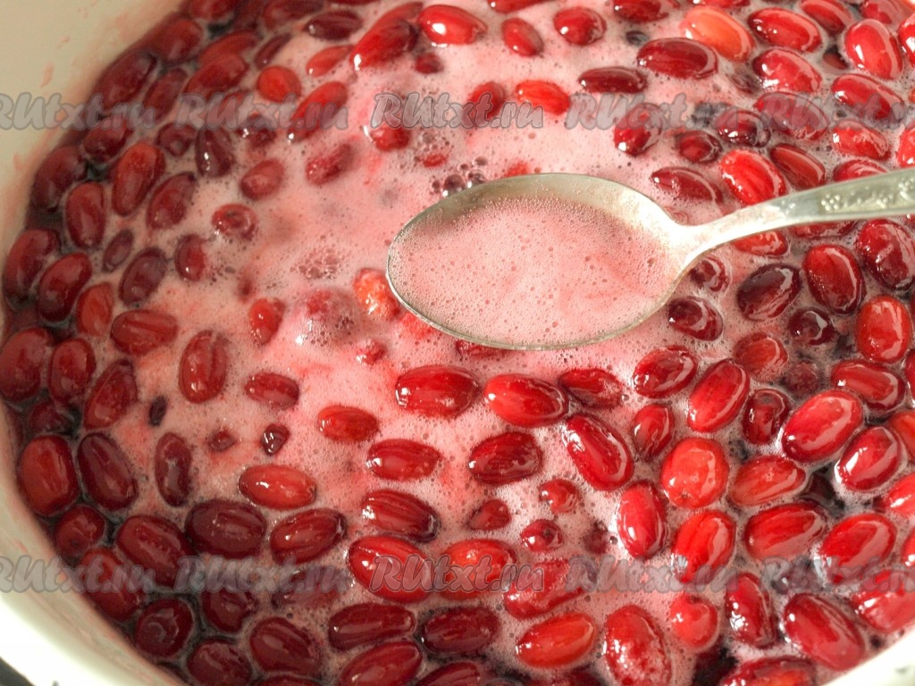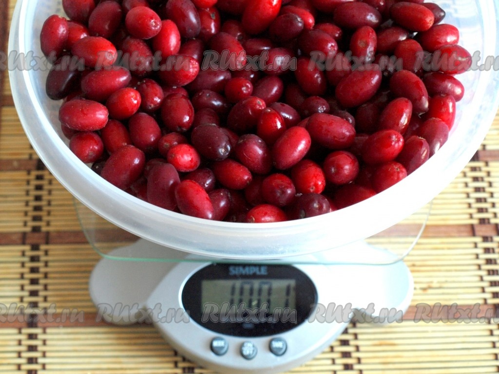 Ягоды кизила промыть проточной водой, удалить хвостики и порченые ягоды.