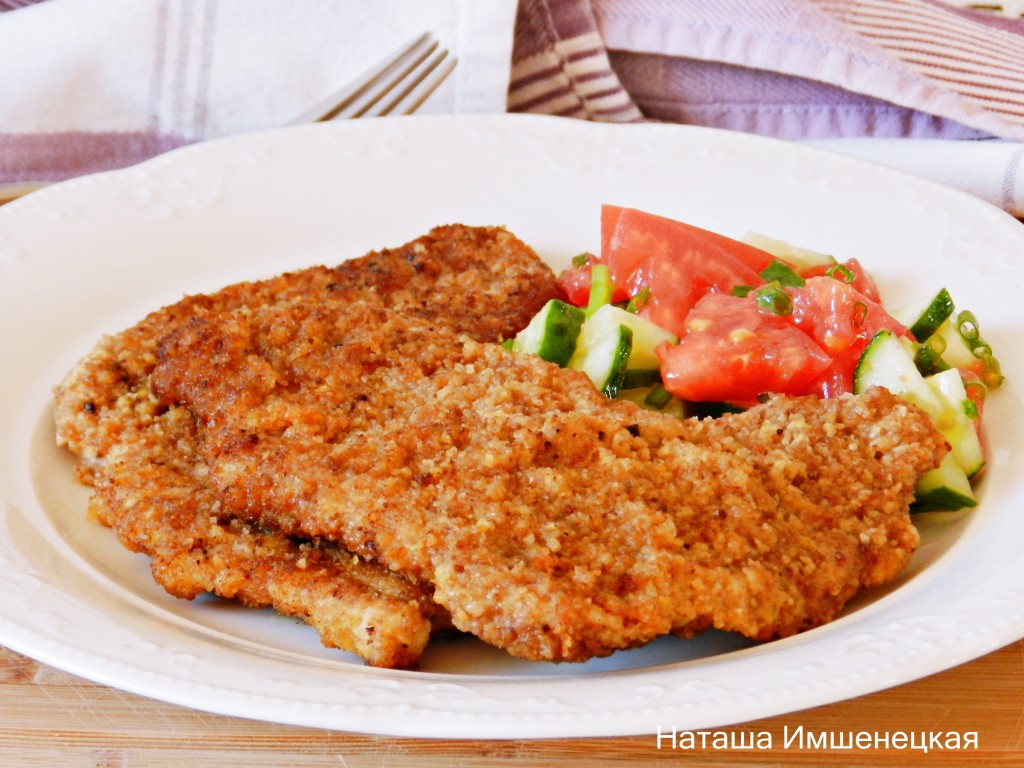 Вкусные, нежнейшие отбивные из филе индейки готовы.