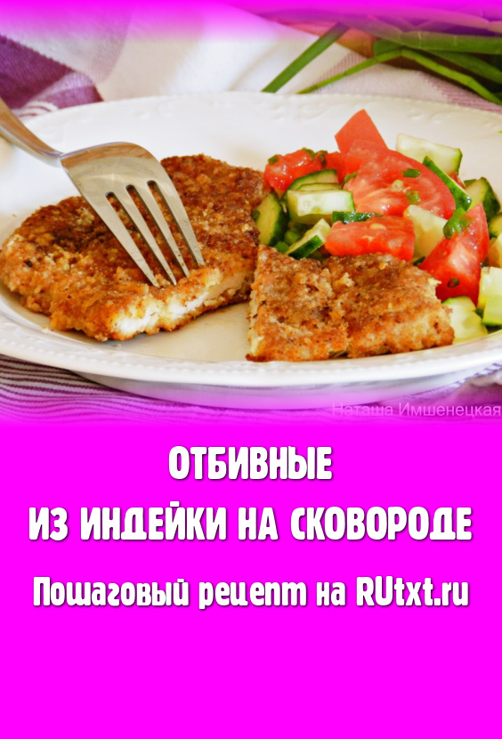 Отбивные из филе индейки, приготовленные на сковороде, получаются очень нежными, с пикантным вкусом и мягкой корочкой из сухарей. Блюдо готовится довольно быстро, а результат всегда получается удачным. По этому рецепту можно приготовить отбивные из другого мяса, например, курицы.