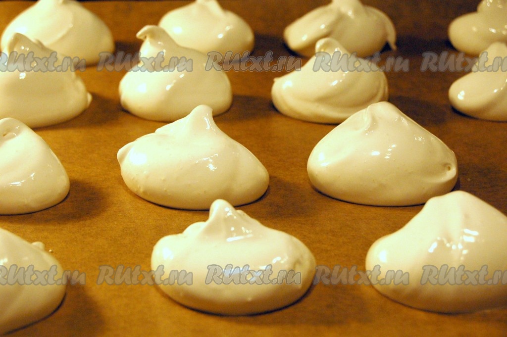 Противень застилаем бумагой для выпечки и выкладываем ложкой безе.
