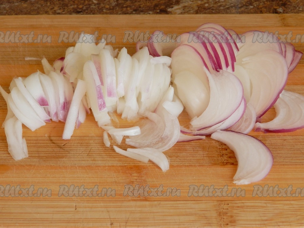 Добавить к сухариками помидоры и лук, посолить и поперчить салат по вкусу.