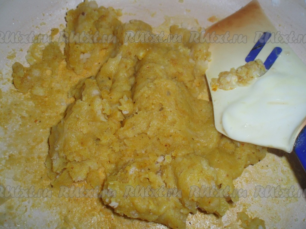 Влить воду, помешивая, пока содержимое сковороды не загустеет. Должна получиться вязкая масса, как при приготовлении заварного теста.