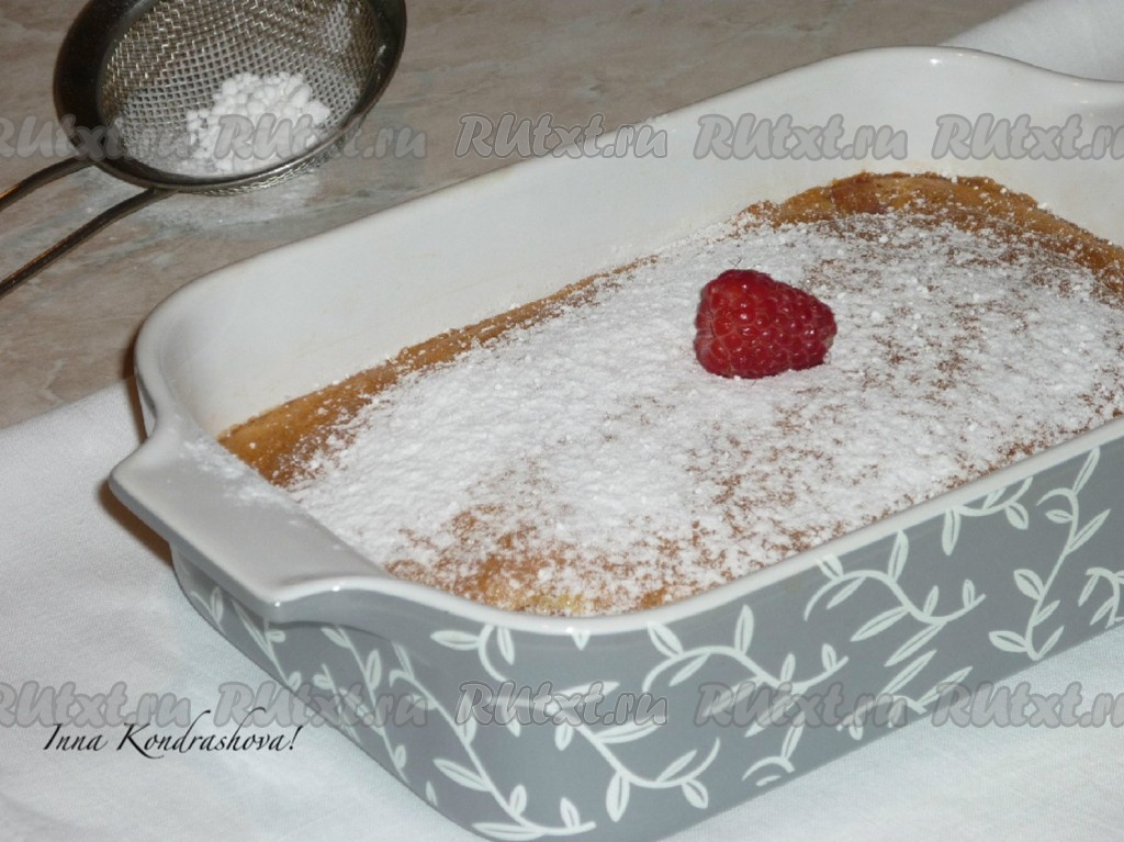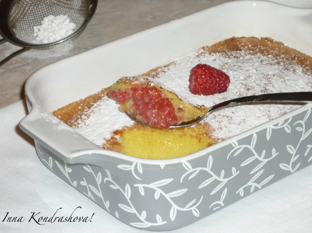 Отправить форму в разогретую до 180 градусов духовку на 20-30 минут. Клафути вырастет в объёме и сверху появится красивая, румяная корочка. Подавать сразу на стол, пока десерт не осел. При подаче посыпать сахарной пудрой.