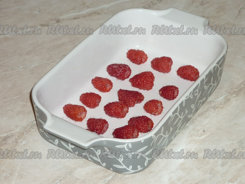 Форму для выпечки смазать сливочным маслом. Свежие ягоды (или фрукты) вымыть, обсушить. Фрукты нарезать на части. Для этого десерта можно взять и замороженные ягоды (или фрукты), только вначале их нужно разморозить, слить выделившийся сок. Подготовленные ягоды (или фрукты) выложить на дно формы для выпечки.