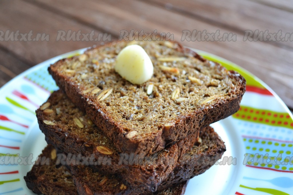 Хлебушек выкладываем на сухой противень и запекаем 10 минут в духовке, разогретой до 180 градусов. Хлебушек должен не поджариться, а подсушиться. Хлеб можно обжарить и на сухой сковороде (только тогда его придется перевернуть на другую сторону, когда начнет меняться цвет).