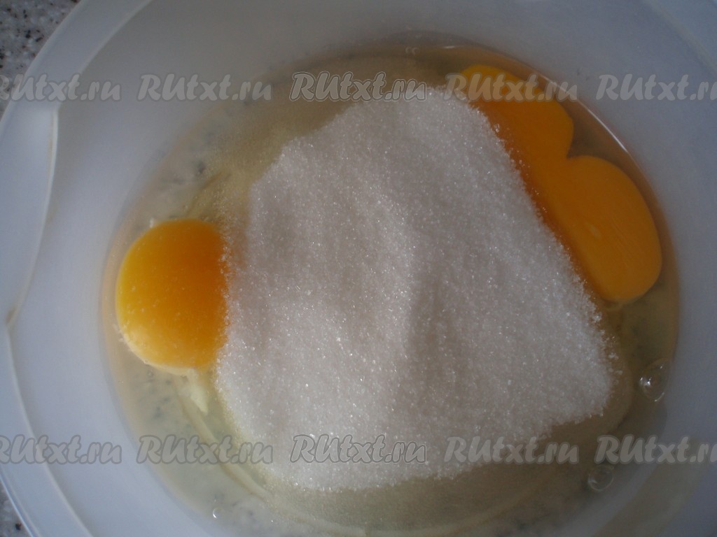 Для приготовления заливки взбить яйца с сахаром.