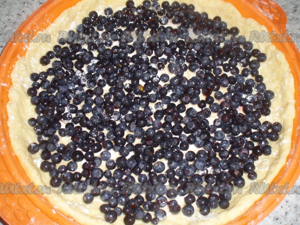 Тесто в форме присыпать щепоткой крахмала и выложить на него чернику.